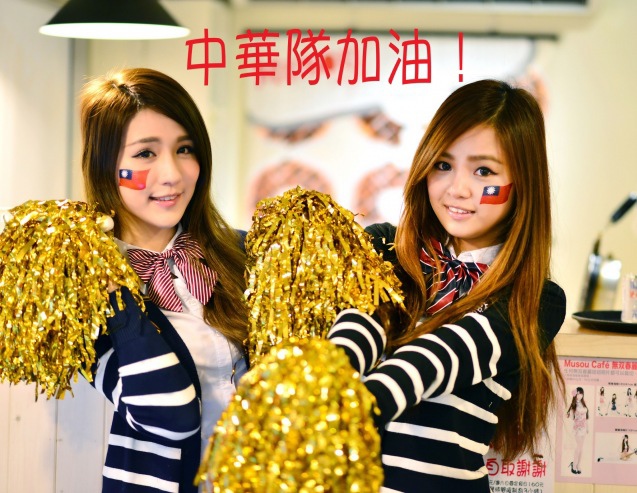 竹竹與無双妞妞們在總部拿起啦啦隊彩球幫中華隊加油呢~