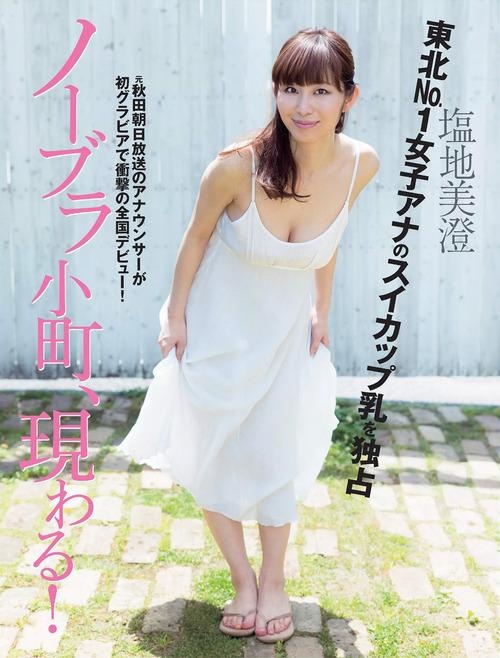 33歲塩地美澄是地方電視台主播,人氣在當地數一數二,被喻為最強美乳主播。日前應《週刊playboy》邀請拍下性感照,她連換多套造型,不吝嗇秀出第一美胸,甚至自爆是「肉食女」,見到大家露出詫異神情,塩地美澄急忙解釋:「我超愛吃燒肉啦!」否認是指喜愛炒飯的肉食女。