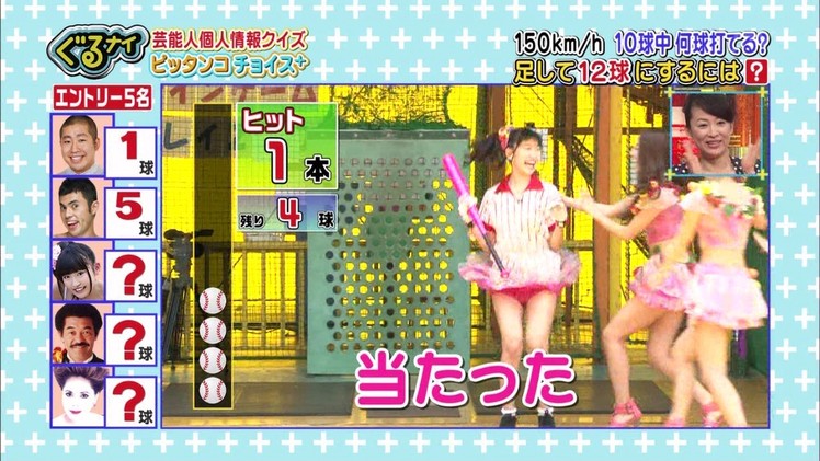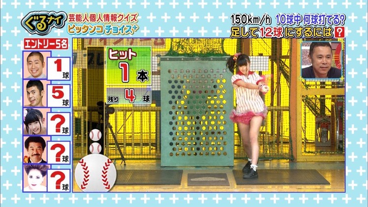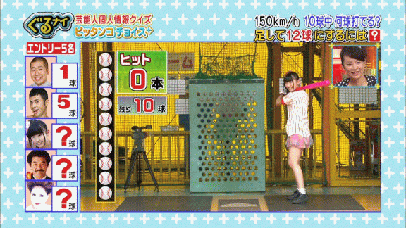 日本少女偶像團體SUPER☆GiRLS(超絶少女)中的年齡最小的15歲成員前島亞美就挑戰過150KM的球速,而且10球竟然能打出3球!